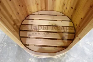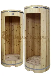 Душевая кабина круглая (овальная) открытого типа, лёгкая и изящная, впишется в любой интерьер и будет хорошо смотреться, как на улице так и в помещении. Круглая душевая кабина из кедра придаст презентабельный вид вашей ванной комнате или спа-салону.