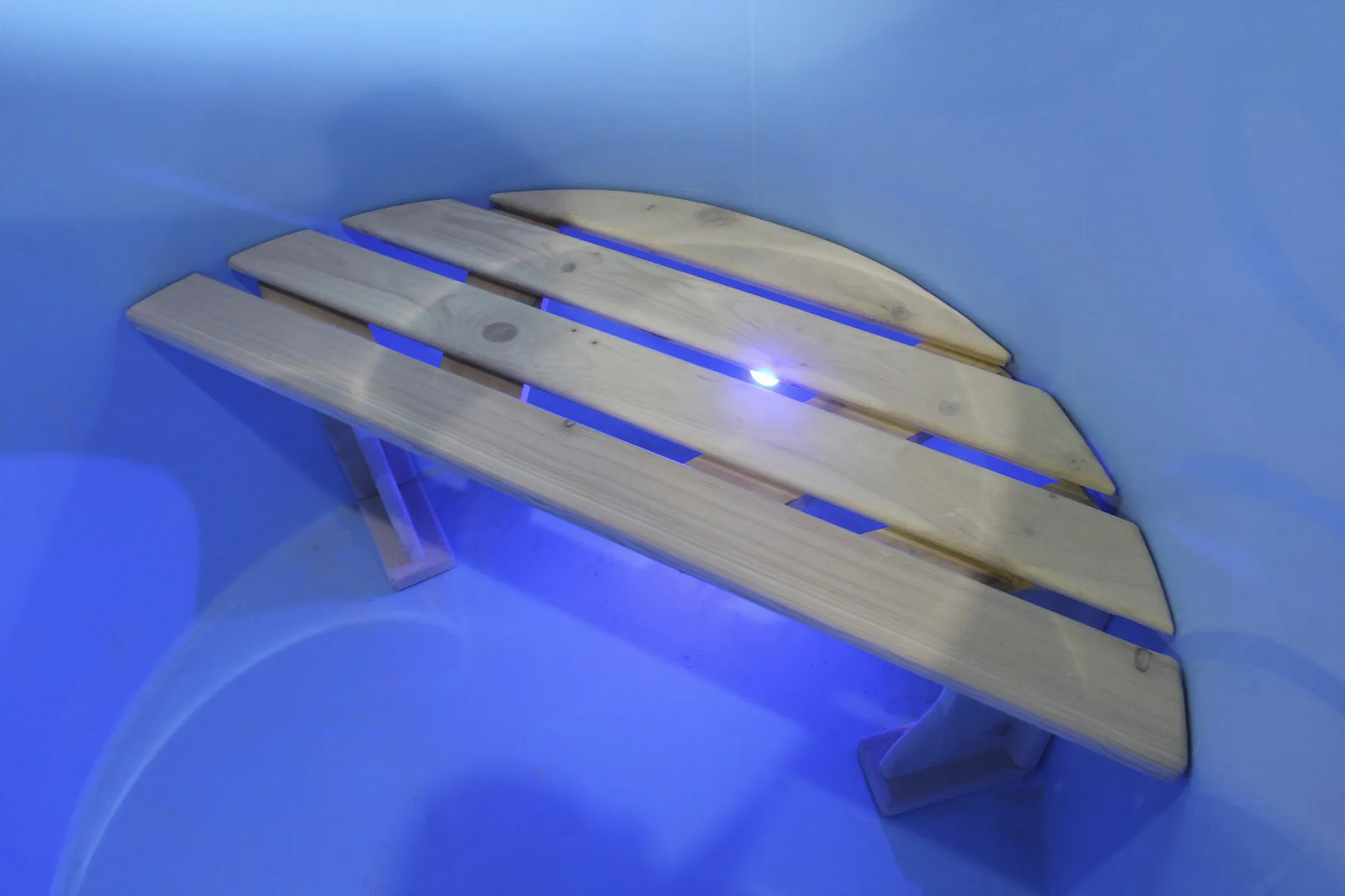 Эффектная подсветка, посредством встроенной, влагозащищённой светодиодной ленты класса IP68. Идеально подходит для круглых купелей. Источник света скрыт от глаз, яркость освещения и цвет можно менять с пульта на расстоянии до 5 метров. Также есть автоматический режим плавной смены цветов, похожий на северное сияние. Хотите удивить близких и друзей? Тогда это ваш вариант!