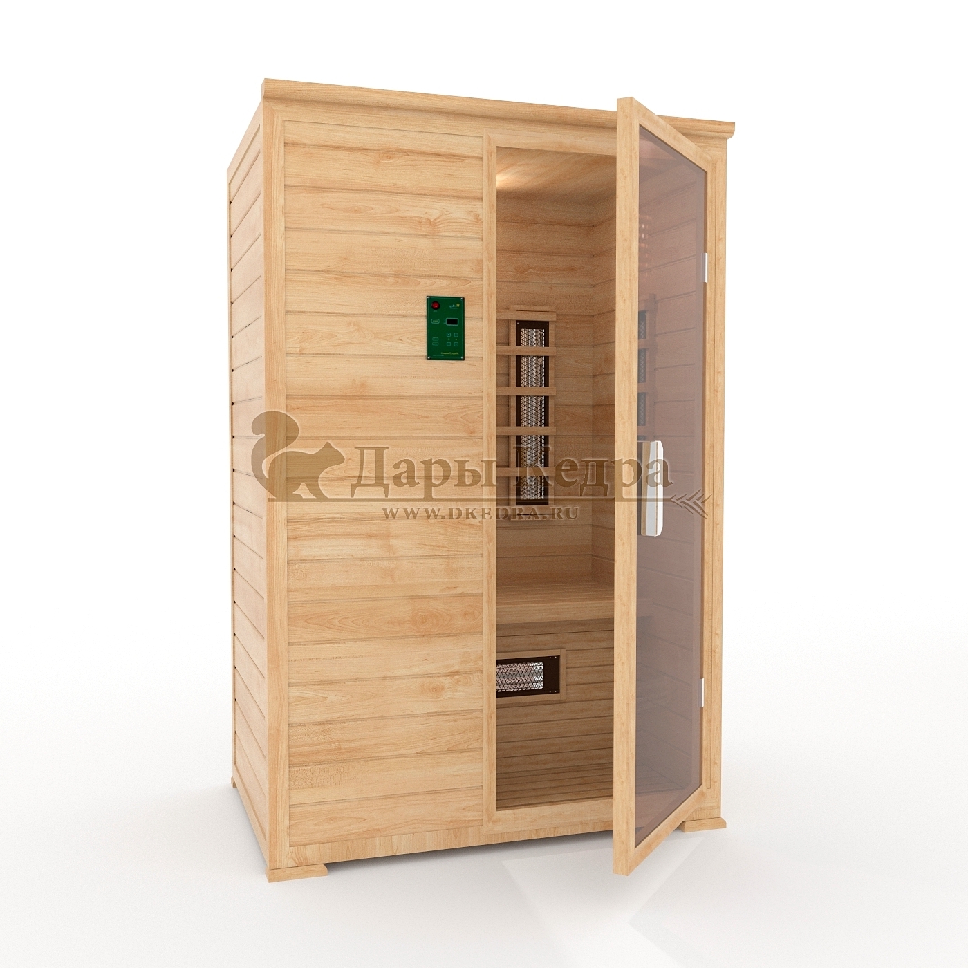 Двухместная инфракрасная сауна кабина из кедра с керамическими излучателями Это специально оборудованная кедровая кабина для прогрева тела человека сухим теплом. Воздух в таких парных не нагревается. Инфракрасные лучи воздействуют на тело, равномерно прогревая мышцы, суставы и органы. Керамические излучатели похожи на лампы, имеют высокую температуру нагрева, поэтому защищены противоожоговыми решетками. Тело человека в таких саунах нагревается интенсивнее. Работает кабина за счет электричества. Двухместная инфракрасная сауна с керамическими излучателями подойдет как для домашнего использования, так и для коммерции. Обращаем Ваше внимание, что в стандартную комплектацию входит трапик для ног, но вы можете его заменить на цельный пол совершенно бесплатно! Целебная древесина кедра и инфракрасные лучи благотворно влияют на организм человека в целом. При регулярном использовании инфракрасной сауны укрепляется иммунитет, улучшается кровообращение и состояние кожи, выводятся токсины.