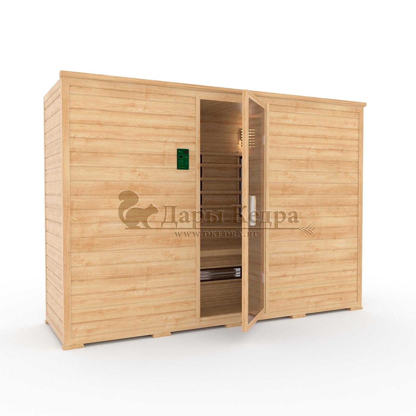 Пятиместная инфракрасная сауна кабина из кедра с керамическими излучателями Это специально оборудованная кедровая кабина для прогрева тела человека сухим теплом. Воздух в таких парных не нагревается. Инфракрасные лучи воздействуют на тело, равномерно прогревая мышцы, суставы и органы. Керамические излучатели похожи на лампы, имеют высокую температуру нагрева, поэтому защищены противоожоговыми решетками. Тело человека в таких саунах нагревается интенсивнее. Работает кабина за счет электричества. Вместительная пятиместная инфракрасная сауна с керамическими излучателями подойдет для коммерческого использования. Обращаем Ваше внимание, что в стандартную комплектацию входит трапик для ног, но вы можете его заменить на цельный пол совершенно бесплатно! Целебная древесина кедра и инфракрасные лучи благотворно влияют на организм человека в целом. При регулярном использовании инфракрасной сауны укрепляется иммунитет, улучшается кровообращение и состояние кожи, выводятся токсины.